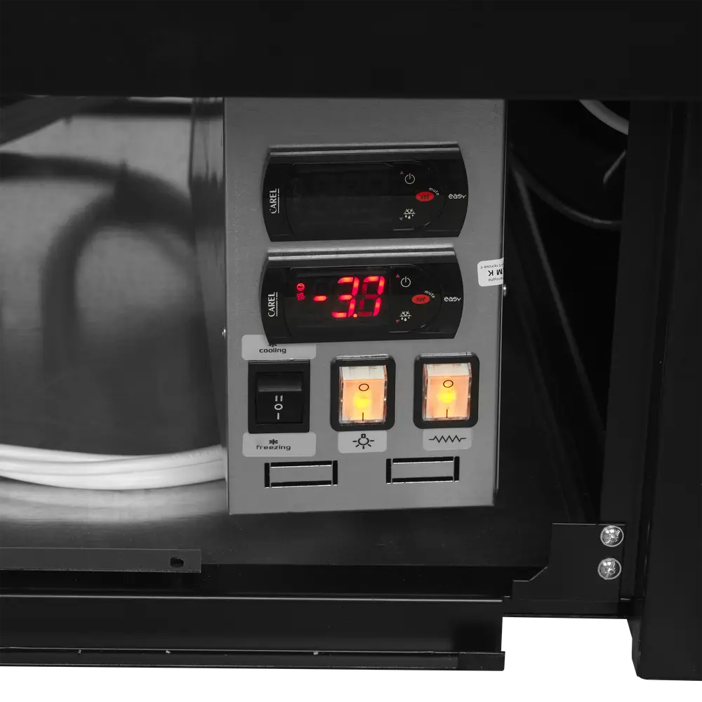 The EIDA chiller/freezer island range provides generous storage capacity with a high loading line, perfect for various products. Featuring glass on all four sides and glass sliding lids, it ensures excellent visibility. The unit can effortlessly switch between cooling and freezing modes to suit your requirements. Additionally, the controller includes a convenient button to toggle the heating in the glass on or off.
