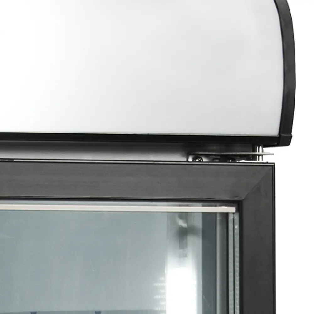 - Self-closing hinged glass doors
