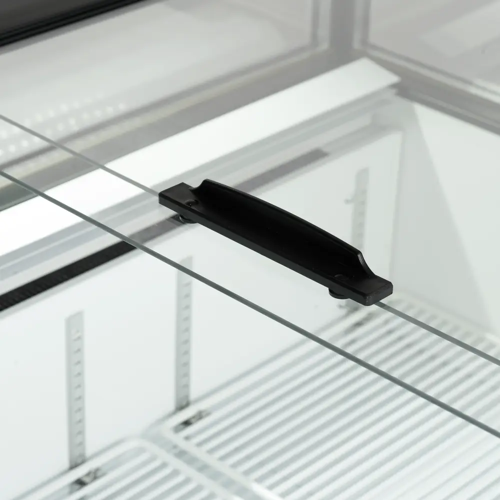 The UHD201 /Black offers unparalleled flexibility in refrigeration solutions for retail environments. Easily switch between freezer and cooling functions, and with sturdy castors, it can be effortlessly relocated within the store. Despite its compact size, this chiller/freezer provides an impressive storage capacity and 360-degree product visibility, making it a versatile and visually appealing option for your store. The ample space below the glass sides allows for personalised branding.