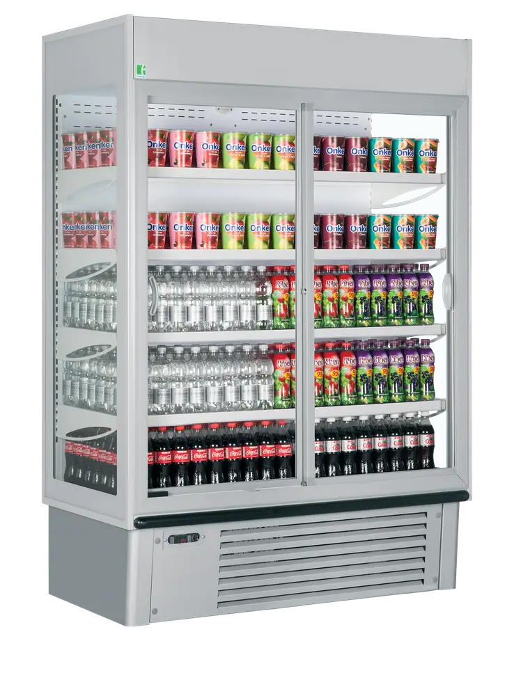 The Super Sunny is a sliding door multideck with a generous 5 tier display. Curved corners give the unit a sleek look, sliding doors help save energy while maintaining the visual appeal of a large display. Fully automatic and fan assisted, it ensures even cooling throughout the whole cabinet for drinks and sandwiches as well as milk and other dairy products.