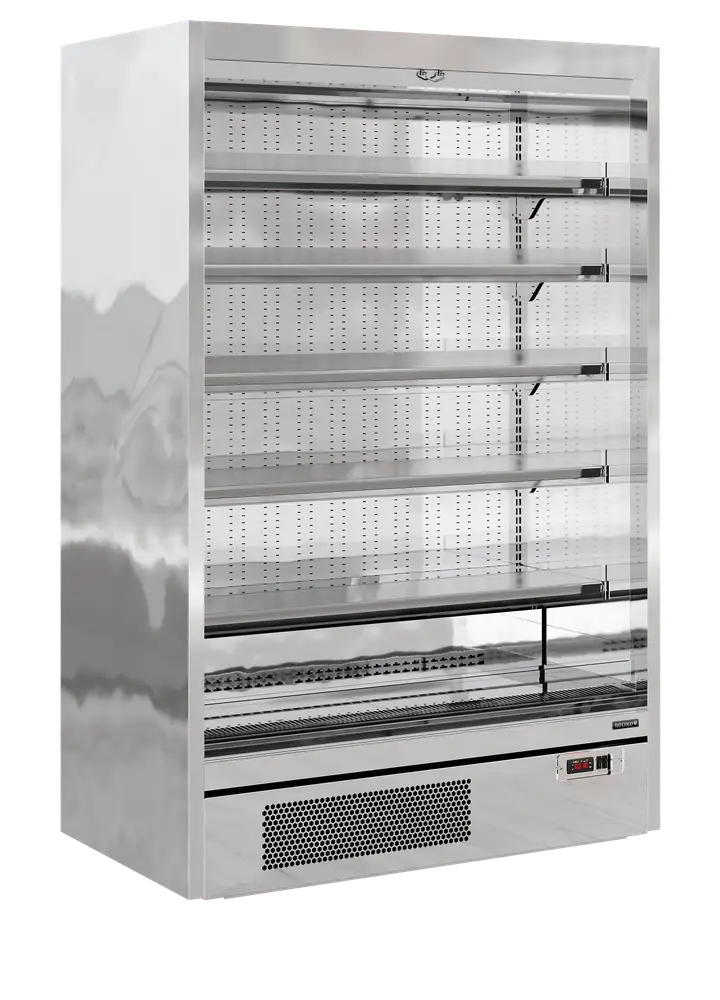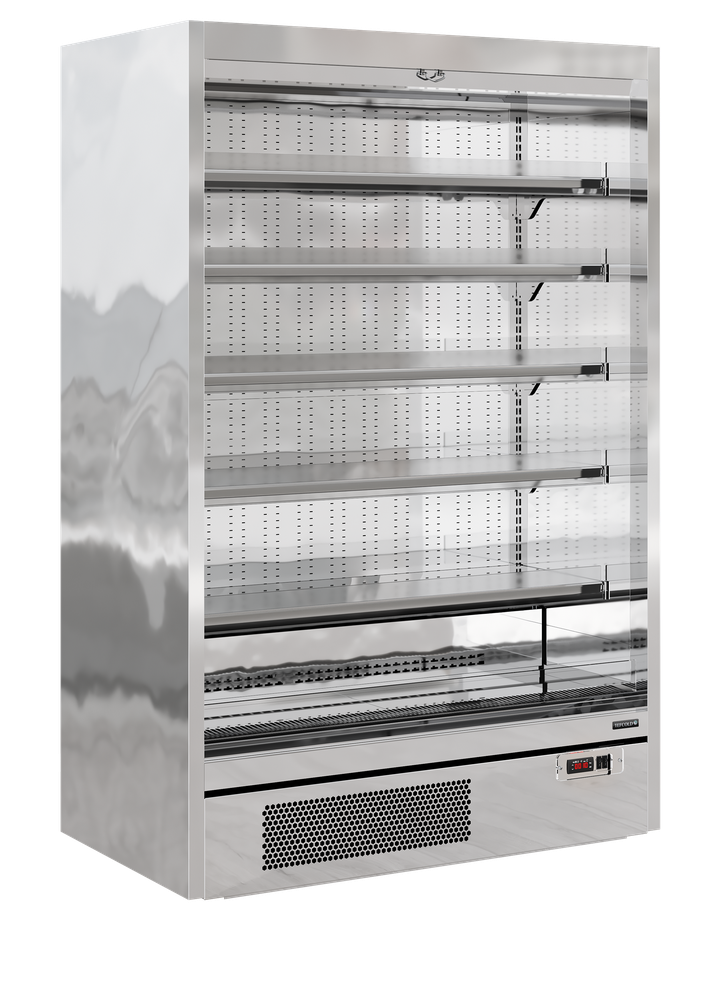 The TEFCOLD Galaxy+ range, finished in mirror stainless steel: our latest innovation in plug-in multidecks. We’ve combined an expanded display area and optimised cabinet efficiency. The ultra-low front and slim top canopy provide an extra 100mm of internal height, accommodating up to 5 shelves (plus base) as standard, all while maintaining an overall height of just 2040mm. With a depth of only 740mm, the unit fits through standard doors for easy installation, yet has 400mm deep shelves for maximum stock capacity. Each unit comes with heavy-duty adjustable shelves that can be tilted if needed, as well as EPOS ticket strips and shelf risers as standard. Optional extras include glass end-walls and multiplexing kits.