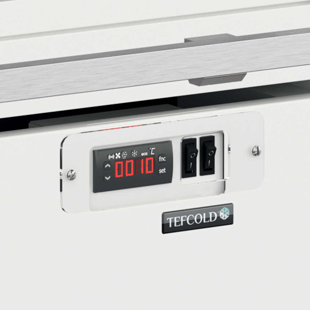 The TEFCOLD Galaxy+ FGD (Full Glass Door) range: our latest innovation in plug-in multidecks. We’ve combined an expanded display area and optimised cabinet efficiency with frameless, full-vision glass doors, offering enhanced product visibility that captures customers’ attention. The ultra-low front and slim top canopy provide an extra 100mm of internal height, accommodating up to 5 shelves (plus base) as standard. With a depth of only 740mm, the unit fits through standard doors for easy installation, yet has 400mm deep shelves for maximum stock capacity. Thanks to the carefully designed refrigeration system and optimal airflow throughout the cabinets, all sizes in this range are rated B for energy efficiency. Each unit comes with heavy-duty adjustable shelves that can be tilted if needed, as well as EPOS ticket strips and shelf risers as standard. Optional extras include glass end-walls and multiplexing kits.