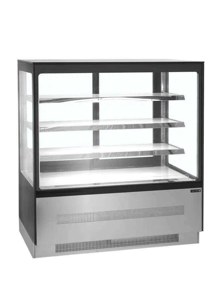 A premium range of refrigerated flat glass displays ideal for cafes and coffee shops. Suitable for deli or cake display and available in different sizes, units have LED lighting under each shelf to help give an excellent display. Sliding doors to the rear allow easy loading and serving while double glazed glass helps to reduce running costs. Finished in stainless steel and gloss black glass.