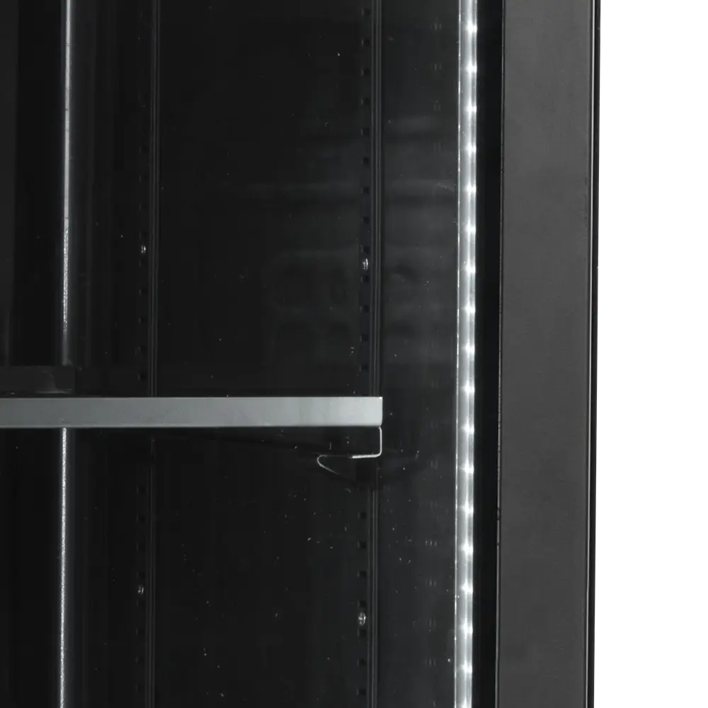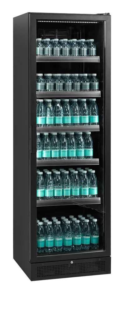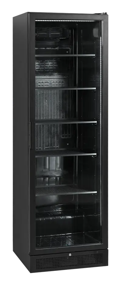 The SCU1425 black display cooler range elevates affordable display refrigeration to a new level of quality. With a sleek black exterior and interior, exudes elegance. Featuring a full-height reversible alu-framed glass door, adjustable shelves, and LED interior lighting, optimising product presentation. The fan-assisted cooling system ensures uniform cooling throughout the cabinet. Additionally, a frameless glass door model is also available.