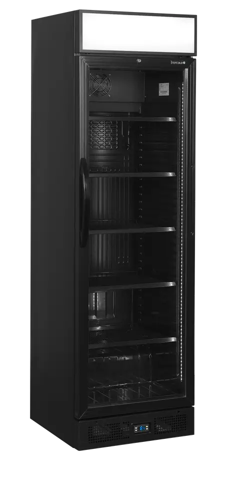 Designed to provide a more premium feel to a display fridge, the CEV435CP is the more energy-efficient version of the CEV425CP. It features a black interior and exterior and a light canopy to enable branding. It has the benefit of twin vertical LED lighting (one strip down each side of the interior of the door frame). This provides exceptional lighting to showcase the front of the products, while many cabinets light produce from the side or the top. Excellent for the display of craft beers, ciders, sports and energy drinks setting your display apart from the rest.