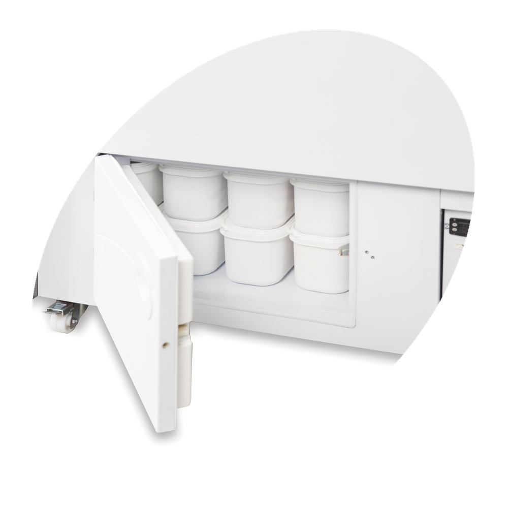 The Bermuda range is available in two display sizes, either 10 or 13 pans. The cabinet is equipped with a ventilated cooling system that ensures your ice cream or gelato is kept at at the ideal serving temperature. Additionally, the Bermuda unit features separate refrigerated under storage, allowing for efficient restocking of the display without having to leave the cabinet. The Bermuda’s sleek curved glass design is both elegant and practical, featuring a heated surface to prevent condensation. It comes as standard with castors for easy mobility, and an internal LED light that beautifully illuminates your products. With its attractive combination of quality and affordability, the Bermuda range is a popular choice for ice cream and gelato sellers.