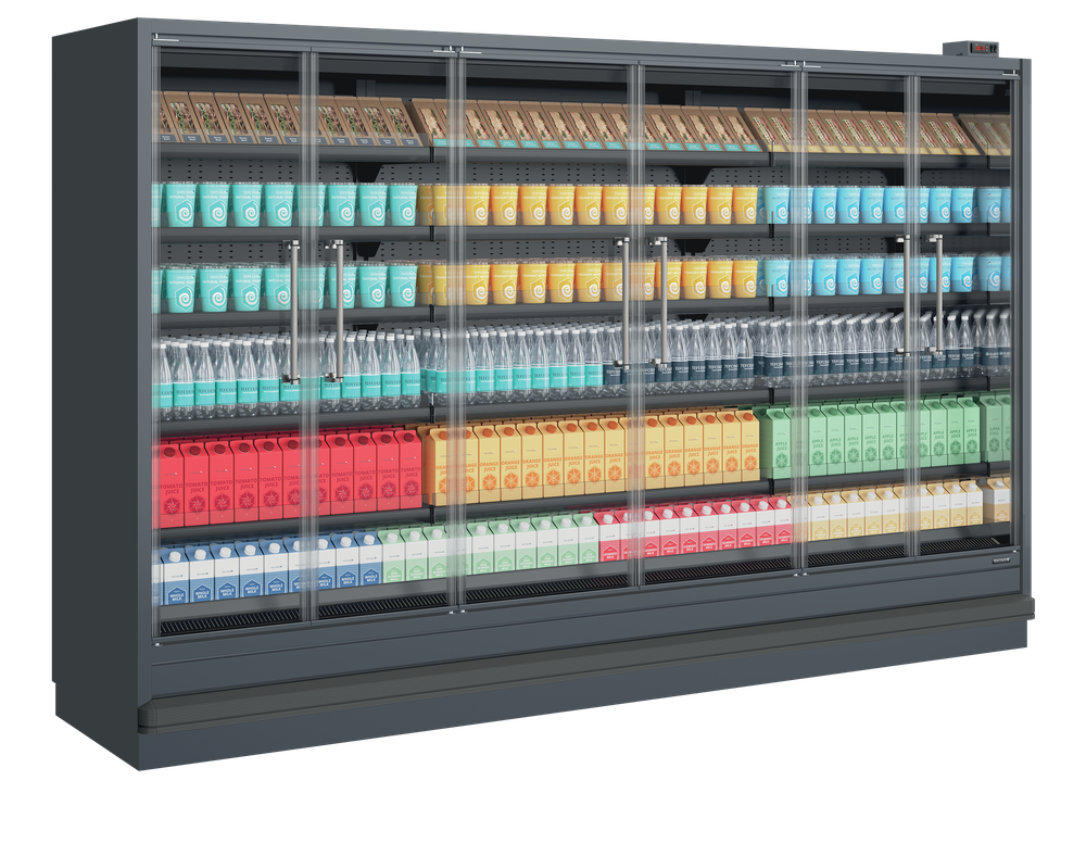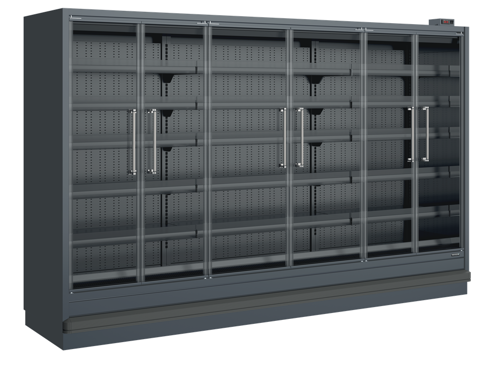 These highly useful remote multidecks, at an extended height, which help to maximise your display space whilst also reducing the impact of both noise and heat. The units are available in 4 sizes. You can multiplex these units with a kit, which allows you to create a larger display size. The large display area creates exceptional product presentation with high-capacity vertical merchandising. For use with a huge variety of chilled products with even temperature distribution across all shelf levels.The LED illumination also enhances the display impact, whilst the energy-efficient operation and modular construction allows for seamless continuous line-ups. Important – this requires an additional remote refrigeration system. 2 year parts warranty only.