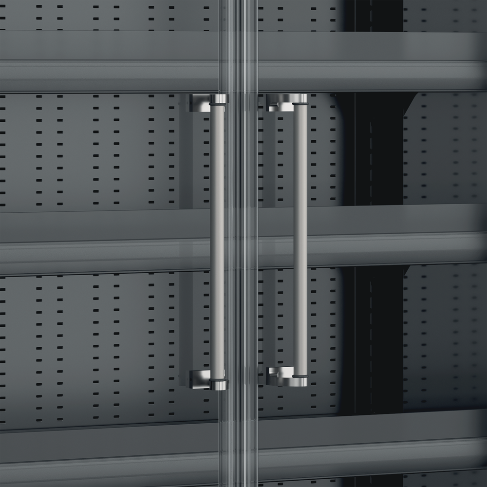 - Frameless glass doors for great product visibility