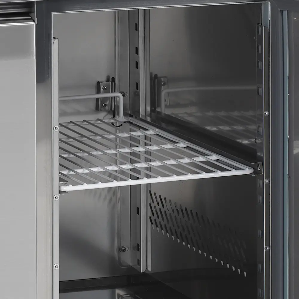 The CF Counter Freezers provide your kitchen with ample storage and also offers great space for food preparation. Supplied with adjustable shelves, these prep counters are Gastronorm compatible, allowing easy transfer of prepared food between appliances. Made of 304-grade stainless steel inside and out, these are easy to clean and maintain. Additionally, these come on castors, enabling you to position and maneuver it with ease.