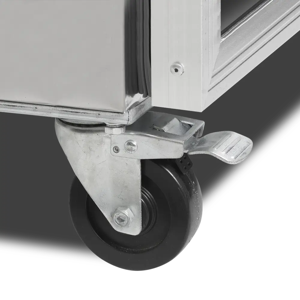 The RF-C GN dimension range of upright freezers with 1 or 2 solid doors is created for professional kitchens and have adjustable shelves in GN2/1 dimensions. It is made from high quality catering grade SS304 stainless steel and has strong wheels for mobility. Ventilated cooling ensures an optimal temperature, which can be set on a digital thermostat – complete with Bluetooth for easy monitoring via an app. We also have a RF range for smaller spaces, but this does not have GN dimensions.