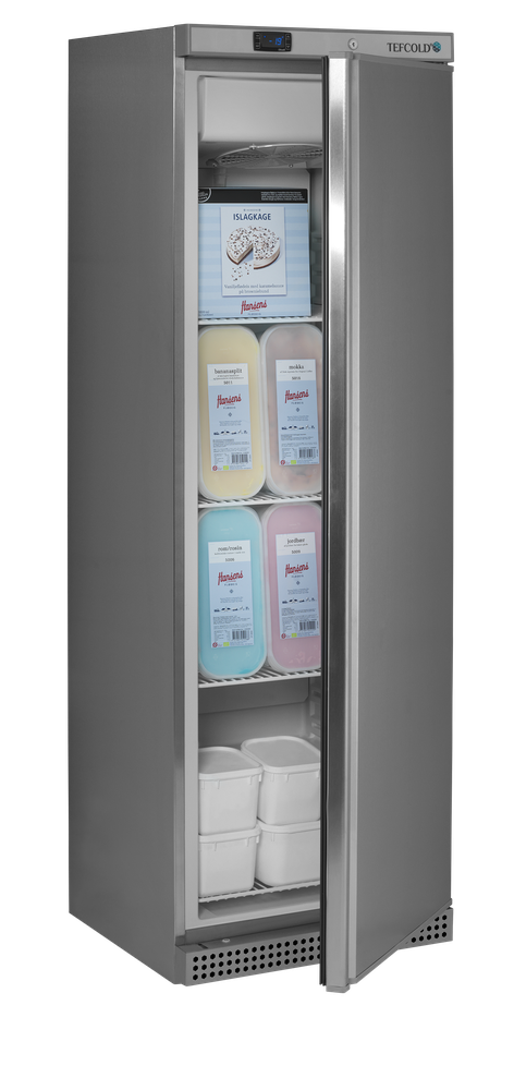 The UF-VS range of freezers is the ventilated version of our stainless steel storage freezers. It comes in various sizes. The freezer has an effective ventilated refrigeration system, which ensures an even temperature throughout the cabinet. Set the temperature on the easy-to-use digital thermostat display. You can customise the freezer to fit your needs with adjustable shelves. Defrost happens automatically.