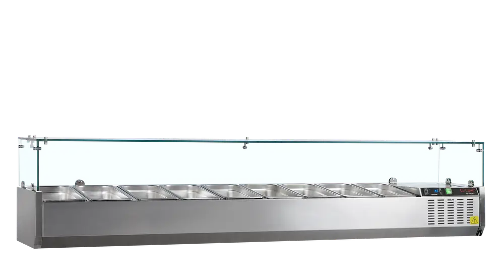Elevate your catering business with the GVC Gastronorm Topping Shelfs. Specifically designed for food service, these enhance your operations with advanced features. Options with glass guard ensuring hygiene and visibility. Organise and display toppings at optimal temperatures for quick food prep. Fully automatic, it maintains temperatures from 2°C to 8°C via a static cooling system, preserving freshness. Manual defrost prevents ice build-up.